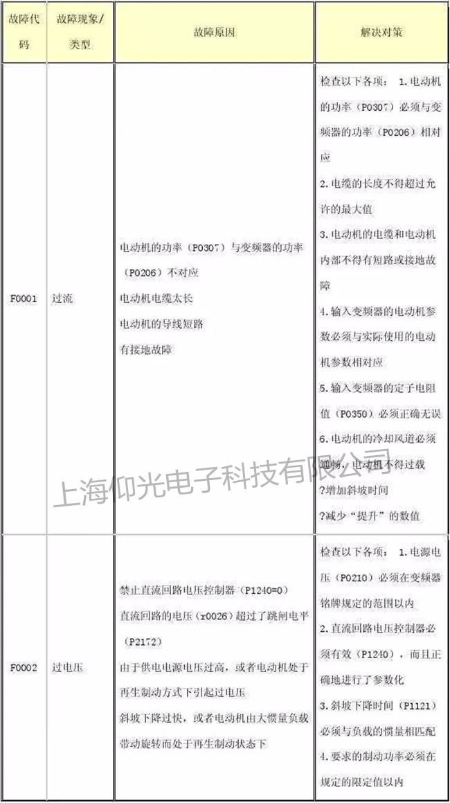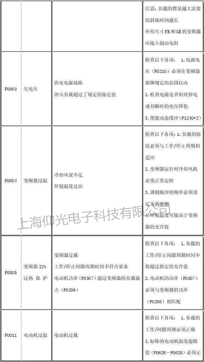 西門子MM440變頻器常見報(bào)警代碼圖如下: