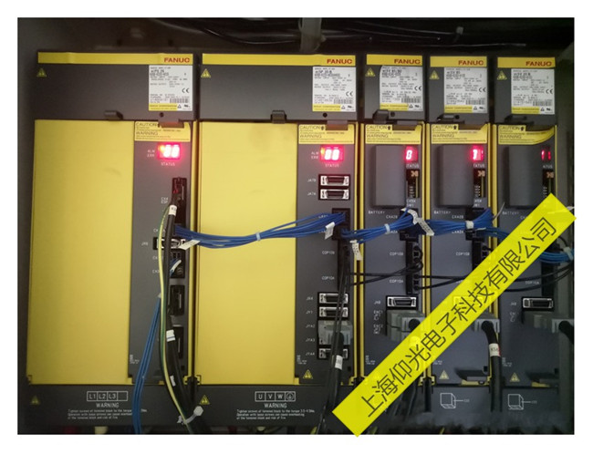 發那科伺服驅動器A06B-6057-H402報警414故障維修:根據對發那科故障的詳細檢查,伺服驅動器的200V三相輸入電壓、I/O軸模塊、連接電纜、接觸器均正常。將I/O LINK軸的CX29,CX30進行短接,脫開電機,空載運行,故障依舊發生。可以判斷故障原因在伺服驅動器上,最后檢查發現是伺服驅動器200V三相進線插頭接線不良導致的414故障報警,更換三相進線插頭后,故障消除。