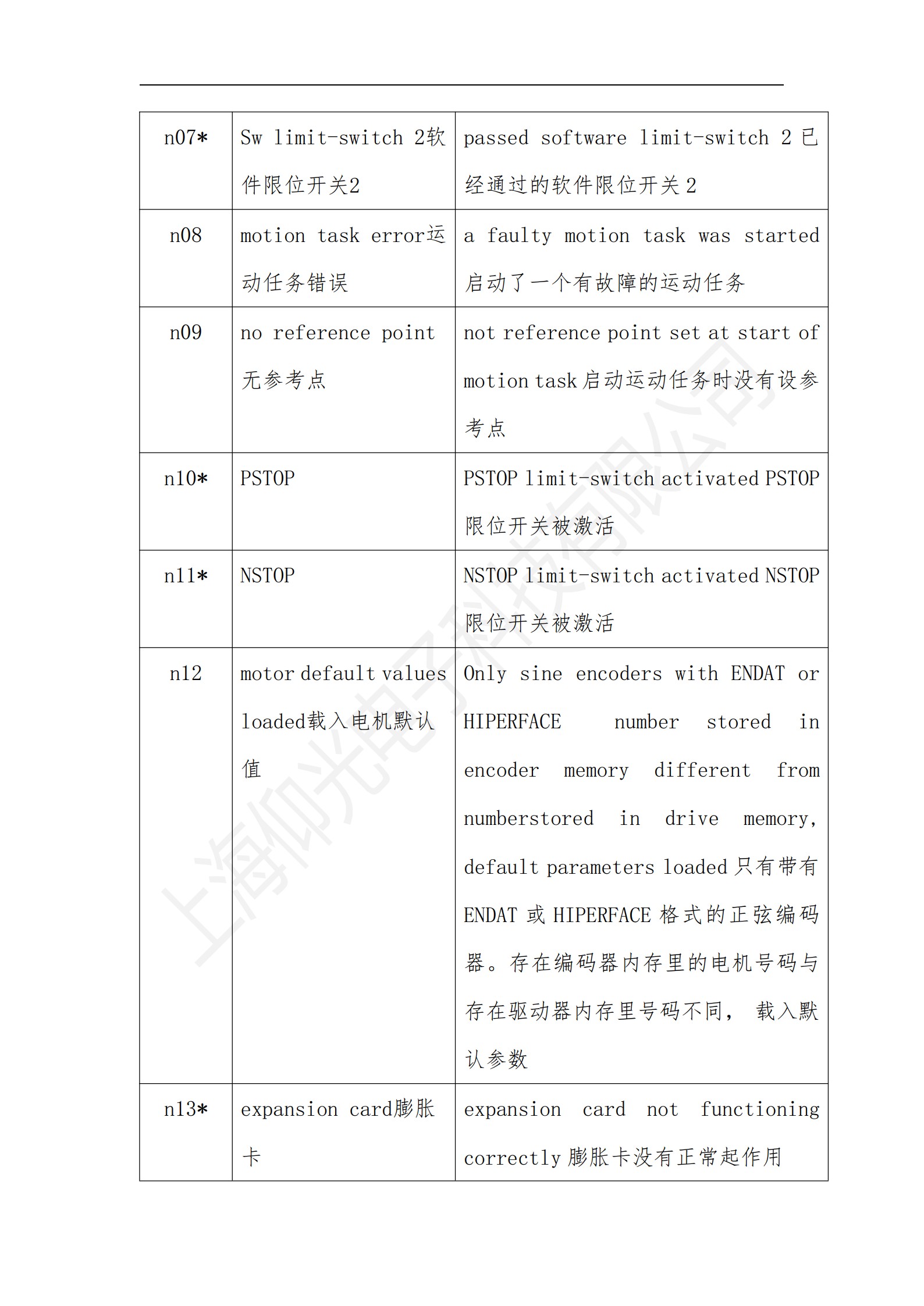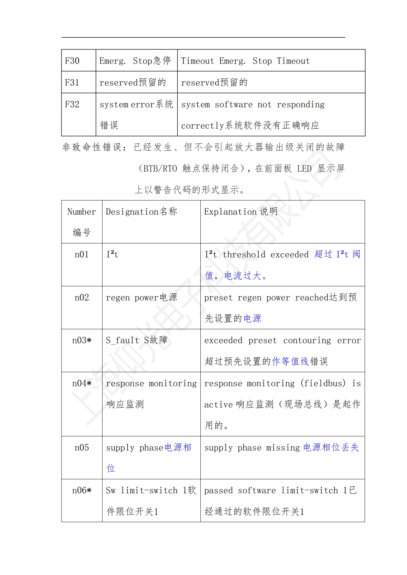 科爾摩根S700系列驅(qū)動器操作使用說明書,科爾摩根S700系列驅(qū)動器報警故障代碼解釋: