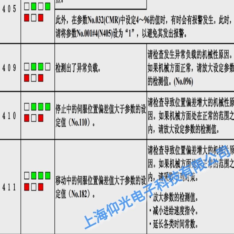 為了能夠順利地對零部件進行維護,請確認報警內容以及放大器的規格,并與 FANUC或上海仰光電子科技有限公司。