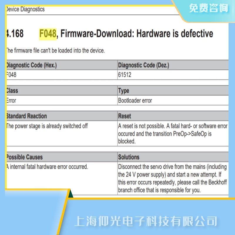 嘉定beckhoff倍福報F048維修解析: